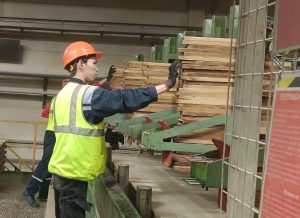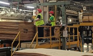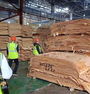 цехам предприятия, где продемонстрировали полный цикл деревообработки: производство шпона, пиломатериалов, топливных древесных гранул из отходов лесопереработки.