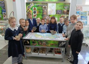Экскурсия была посвящена уникальным природным ресурсам, которыми богат наш Хабаровский край. Ребята познакомились с богатствами недр – полезными ископаемыми, минералами и горными породами, нашли на карте места их залегания. Большой интерес вызвал растительный и животный мир родного края, дети с большим интересом слушали экскурсовода, задавали вопросы, рассматривая экспонаты. Это был довольно интересный опыт более глубокого осмысления жизни человека в гармонии с природой.